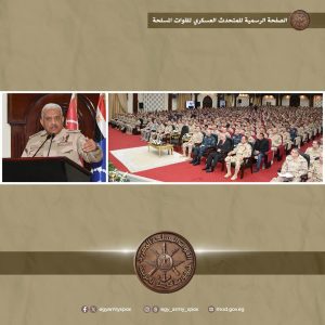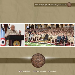 وألقى الفريق أول عبد المجيد صقر القائد العام للقوات المسلحة وزير الدفاع والإنتاج الحربى كلمة نقل خلالها تحيات وتقدير السيد الرئيس عبد الفتاح السيسى رئيس الجمهورية القائد الأعلى للقوات المسلحة وإعتزازه بالجهد الذى يبذله رجال القوات المسلحة فى صون مقدرات الوطن.