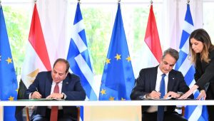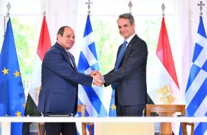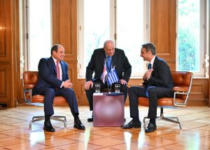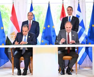 وأضاف المتحدث الرسمي أن المباحثات تطرقت كذلك إلى تطورات الأوضاع في منطقة شرق المتوسط، حيث رحب السيد الرئيس بجهود التهدئة الحالية في المنطقة، معرباً عن تطلعه إلى إستثمار هذه الأجواء الإيجابية لحل أي خلافات قائمة، بما يتيح تحقيق أقصى إستفادة من الموارد الطبيعية لصالح شعوب المنطقة، كما بحث الجانبان تطورات الأوضاع في سوريا، لبنان، ليبيا، السودان وأمن الملاحة في البحر الأحمر، بالاضافة إلى الأزمة الروسية الأوكرانية. وفي أعقاب المباحثات، وقّع السيد الرئيس ورئيس الوزراء اليوناني الإعلان المشترك بشأن الشراكة الإستراتيجية بين مصر واليونان، كما شهدا توقيع عدد من مذكرات التفاهم في مجالات عدة، تعكس عمق العلاقات الثنائية بين البلدين.