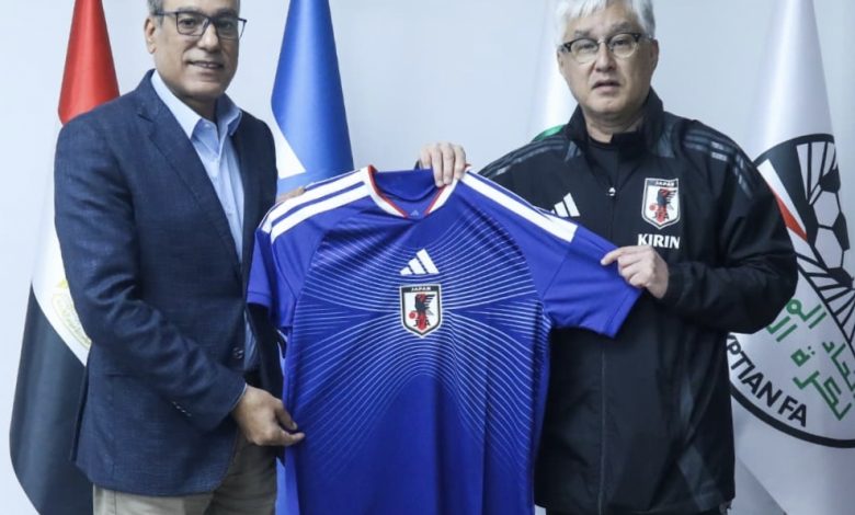أمين إتحاد الكرة يستقبل رئيس بعثة منتخب اليابان ويتبادلان الدروع التذكارية