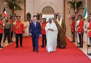عقد فخامة الرئيس عبد الفتاح السيسي جلسة مباحثات ثنائية مع أخيه حضرة صاحب السمو امير دولة الكويت الشيخ مشعل الأحمد الجابر الصباح “حفظه الله ورعاه”، سبقها جلسة موسعة ضمت أعضاء الوفدين شهدت تناولا معمقا للعلاقات الثنائية بين البلدين الشقيقين، وإشادة متبادلة وتقديرا لعمق وقوة تلك العلاقات الثنائية الوثيقة بينهما على مختلف المستويات الرسمية والشعبية، وما شهدته من تضامن كامل عبر مختلف المحطات المحورية والفارقة على نحو برهن بوضوح على التزامهما المتبادل بضمان وحماية أمن ومصالح كلا البلدين الشقيقين وحرصهما الراسخ على حماية الأمن القومي العربي باعتباره كلاً لا يتجزأ.
