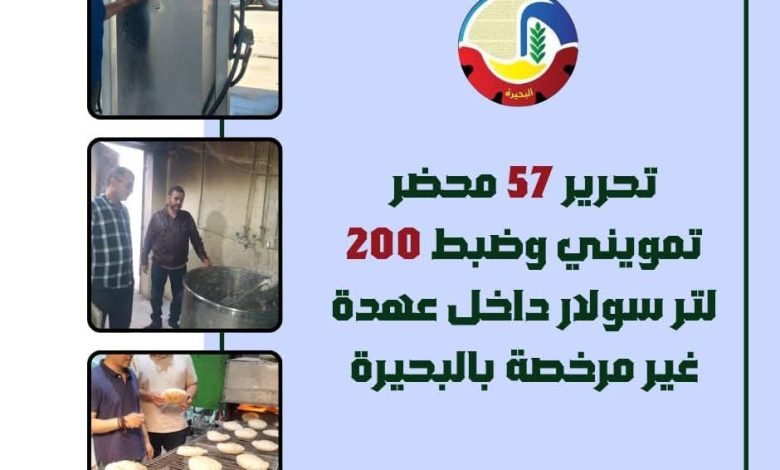 تحرير ٥٧ محضرا تموينيا وضبط ٢٠٠ لتر سولار بالبحيرة