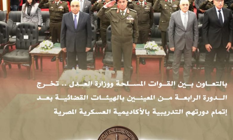 تخرج الدورة الرابعة من المعينين بالهيئات القضائية بعد إتمام دورتهم التدريبية بالأكاديمية العسكرية المصرية