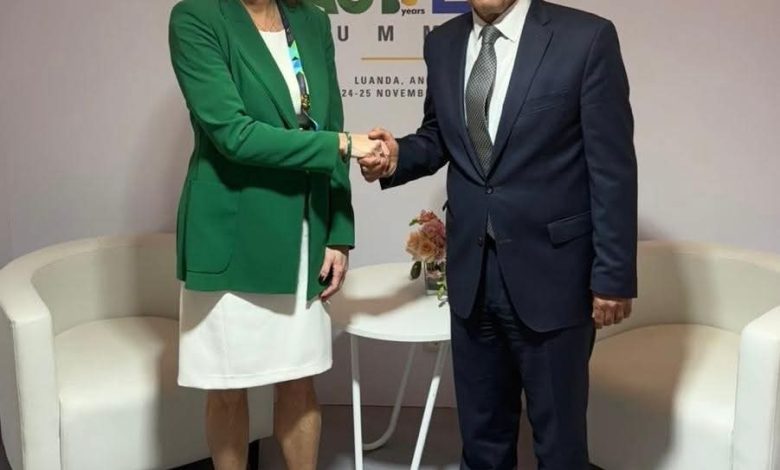 التقى د. بدر عبد العاطي وزير الخارجية والهجرة وشئون المصريين بالخارج، اليوم الإثنين مع السيدة تانيا فايون نائبة رئيس الوزراء ووزيرة خارجية جمهورية سلوفينيا، وذلك على هامش مشاركته في أعمال القمة الإفريقية الأوروبية المنعقدة في أنجولا.