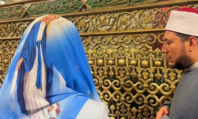 ترتدي طرحة عليها صورة مريم العذراء.. السفيرة نبيلة مكرم تزور مقام السيد البدوي بطنطا