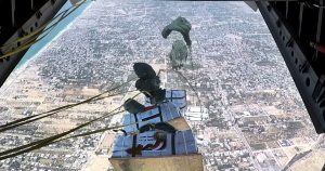 أقلعت 4 طائرات نقل عسكرية من جمهورية مصر العربية محملة بأطنان من المساعدات الغذائية لتنفيذ أعمال الإسقاط الجوى على المناطق التى يصعب الوصول إليها براً بقطاع غزة ، وذلك لتخفيف حدة الأوضاع المعيشية الصعبة ونقص الإحتياجات الإنسانية التى يعانى منها سكان القطاع ، هذا بالتزامن مع إستمرار تقديم المساعدات براً .