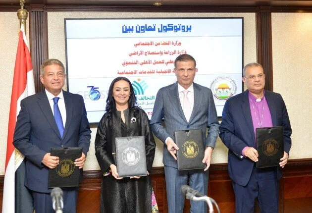 وقعت الدكتورة مايا مرسى وزيرة التضامن الاجتماعي، وعلاء فاروق وزير الزراعة واستصلاح الأراضي، والمهندس خالد عبد العزيز رئيس مجلس أمناء التحالف الوطني للعمل الأهلي التنموي، والدكتور القس أندرية زكي، رئيس الطائفة الإنجيلية بمصر، رئيس الهيئة القبطية الإنجيلية للخدمات الاجتماعية، بروتوكول تعاون لإطلاق مرحلة جديدة من مبادرة “ازرع”، بين وزارة التضامن الاجتماعي ممثلة في صندوق دعم الصناعات الريفية والبيئية والإنعاش الريفي، ووزارة الزراعة واستصلاح الأراضي، والتحالف الوطني للعمل الأهلي التنموي، والهيئة القبطية الإنجيلية للخدمات الاجتماعية، وذلك في إطار جهود الدولة والمجتمع المدني لتحقيق الأمن الغذائي ودعم المزارع المصري.