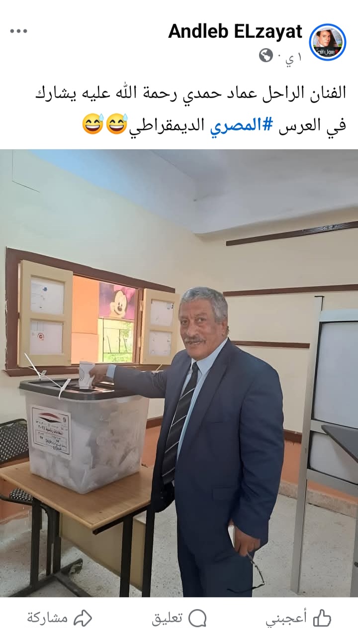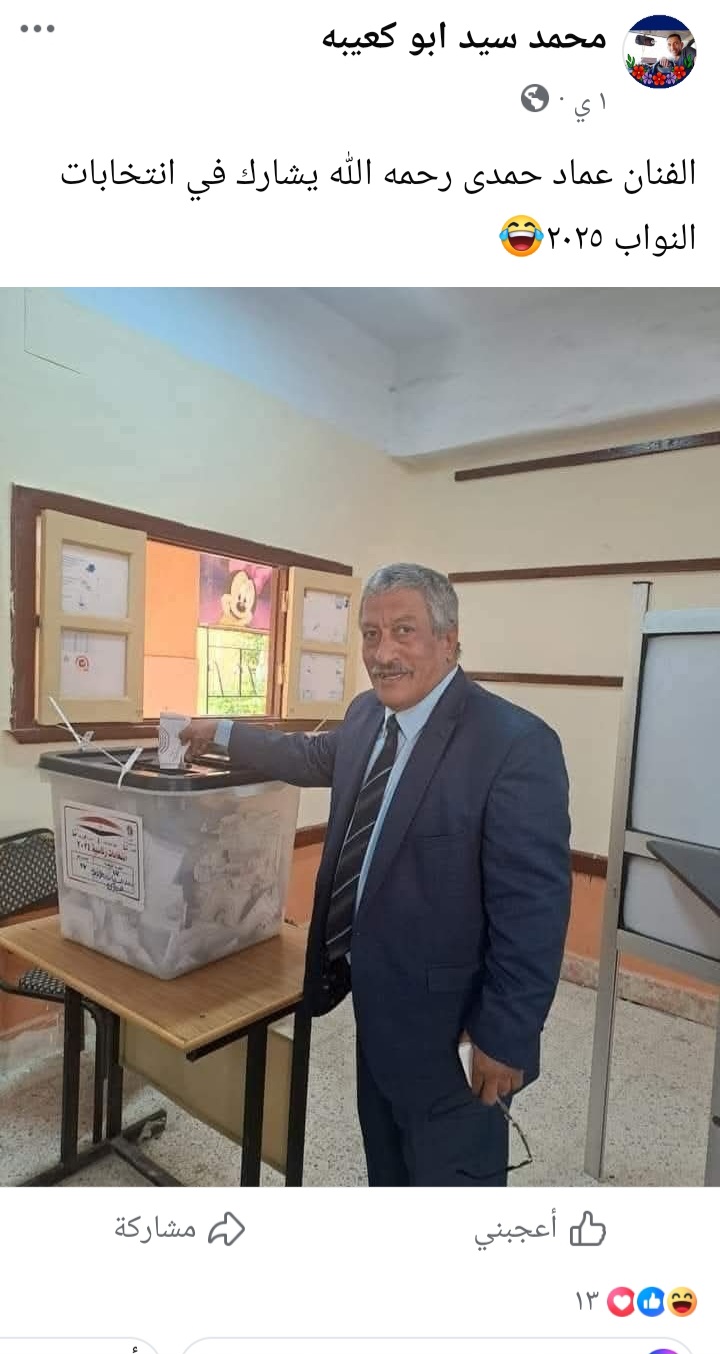 في واقعة أثارت جدلًا واسعًا عبر مواقع التواصل الاجتماعي، تحولت صورة لرجل أدلى بصوته داخل لجنته الانتخابية بمحافظة قنا إلى مادة للتريند خلال اليومين الماضيين، بعدما تداولها البعض ساخرين بزعم أن الفنان الراحل عماد حمدي عاد إلى الحياة للمشاركة في انتخابات مجلس النواب! وبين من يؤكد عودته “للعالم الآخر” بعد الإدلاء بصوته، وآخرين يدّعون أن صاحب الصورة هو شقيق الفنان الراحل بسبب الشبه الكبير… جاءت الحقيقة لتبدد كل هذا اللغط الذي تحول إلى تريند غير متوقع خلال الأيام الماضية.