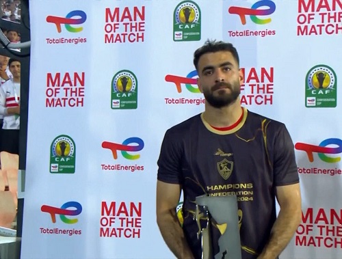 وتسلم حمزة المثلوثي جائزة لاعب المباراة النهائية بين الزمالك ونهضة بركان، عقب اطلاق الحكم صافرة نهاية اللقاء.