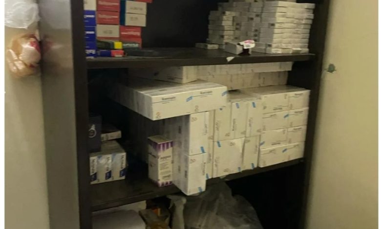 وخلال الحملة، تم اكتشاف وجود كميات من الأدوية المخدرة والمهدئات النفسية غير المصرح بتداولها، إلى جانب العثور على 36 أمبولا لمواد مخدرة مخالفة للقانون، وأكثر من 10 آلاف قرص وأمبول مجهول المصدر. كما وُجدت نفايات طبية خطيرة تُخزَّن بشكل غير آمن داخل غرف الكشف، وهو ما يشكل تهديدًا مباشرًا لصحة المرضى والعاملين.