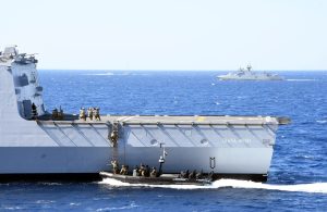 كما نفذت القوات المشاركة عدد من الأنشطة التدريبية بالبحر منها تبادل الطائرات الهليكوبتر على أسطح القطع البحرية ، فضلاً عن تنفيذ أعمال حق الزيارة والتفتيش للسفن المشتبه بها , بالإضافة إلى تنفيذ أعمال الإمداد بالبحر ، وعدد من تشكيلات الإبحار والتى عكست مدى التجانس بين العناصر المشاركة وقدرتها على إتخاذ أوضاعهم بدقة وسرعة عالية .