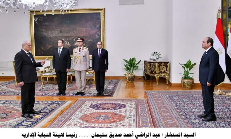 رئيسا مجلس الدولة والنيابة الإدارية يؤديان اليمين الدستورية أمام رئيس الجمهورية