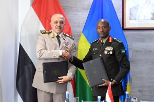 وترأسا رئيسا أركان البلدين الجلسة الختامية للإجتماع الثالث للجنة التعاون العسكرى المصرية الرواندية ، وأشادا بجهود أعضاء اللجنة العسكرية المشتركة من الجانبين وما توصلت إليه من نتائج فى مختلف المجالات العسكرية بما يسهم فى نقل وتبادل الخبرات ويدعم جهود الأمن والإستقرار على مستوى القارة الأفريقية ، وقاما رئيسا أركان البلدين بالتوقيع على محضر الجلسة الختامية للجنة ..مؤكدين على أهمية فتح آفاق جديدة للتعاون المشترك بين القوات المسلحة لكلا البلدين .