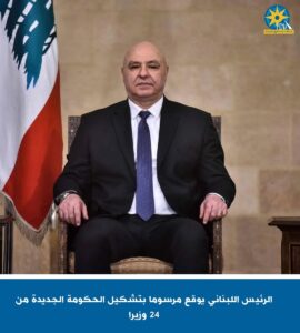 وكان الرئيس اللبناني، العماد جوزاف عون، قد وقع مرسوما بتشكيل الحكومة اللبنانية الجديدة برئاسة نواف سلام، والمكونة من 24 وزيرا.