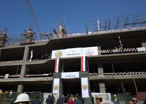 وقال مسئول الهيئة الهندسية لرئيس الوزراء: فيما يتعلق بالموقف التنفيذي للمشروع فقد تم إحلال وتجديد شبكات البنية التحتية بما تتضمن من (كهرباء – مياه وحريق وري وخزان (3000) م3– صرف صحي ومحطة معالجة (1000) م3 –– تيار خفيف)، كما تم تنسيق الموقع العام بما يشمله من (طرق – أرصفة – بردورات – زراعات)، لافتا إلى أنه يتم تكثيف العمل للانتهاء من المشروع وفق المخطط الزمني لكل مراحله؛ حيث من المقرر الانتهاء من الهيكل الخرساني في 30 يونيو المقبل، كما سيتم الانتهاء من مبنى الجراج متعدد الطوابق في مارس المقبل، والذي يسع لإنتظار 640 سيارة.