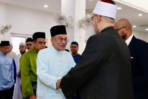 التقى رئيس الوزراء الماليزي، أنور إبراهيم، اليوم الجمعة، فضيلة الدكتور نظير محمد عياد، مفتي الجمهورية، رئيس الأمانة العامة لدور وهيئات الإفتاء في العالم، بحضور السفير المصري لدى ماليزيا كريم السادات، وفضيلة الشيخ أحمد فواز علي فاضل، مفتي ماليزيا، وذلك عقب أداء صلاة الجمعة بمقر مسجد القدوس بالعاصمة الماليزية كوالالمبور.