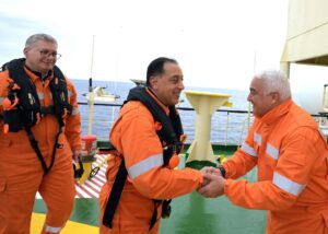 قام اليوم الدكتور مصطفى مدبولي، رئيس مجلس الوزراء، بزيارة موقع حقل ظُهر للغاز الطبيعي شمال بورسعيد..وتفقد حفار ظُهر “سايبم 10000″، يرافقه المهندس كريم بدوي، وزير البترول والثروة المعدنية، حيث كان في استقبالهما لدى الوصول فرانشيسكو جاسباري، مدير عام شركة إيني، ومارتينا اوبيتسى، رئيسة منطقة شمال أفريقيا والمشرق العربي لشركة إيني.