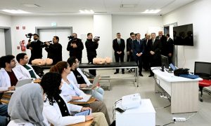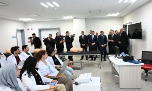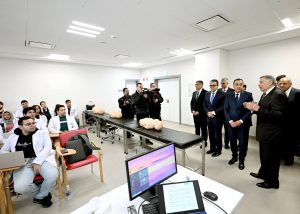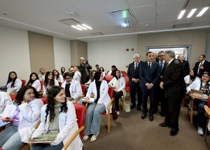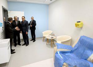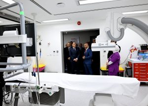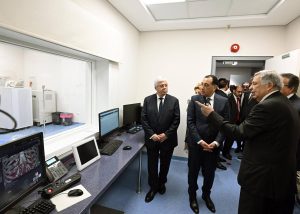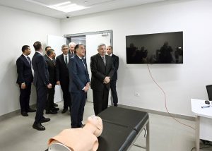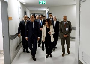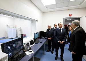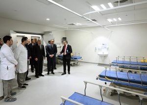 وبدأ رئيس مجلس الوزراء ومرافقوه بتفقد الطابق الأرضي، وما يضمه من قاعات تدريس؛ حيث حضر شرحا لإحدى التجارب العملية للفرقة الرابعة بكلية الطب بجامعة الجيزة الجديدة، ثم توجه لقسم علاج حالات اليوم الواحد بغرفة العلاج الكيماوي، وغرفة الغسيل الكلوي، كما تفقد غرفة المناظير، وقسم الأشعة، التي شاهد فيها أحد أجهزة الأشعة المقطعية، وجهاز الرنين المغناطيسي، كما تم تفقد قسم الطوارئ، حيث مر على غرفة الكشف الأولي، وغرفة الإجراءات الجراحية البسيطة، وقسم الملاحظات.