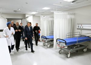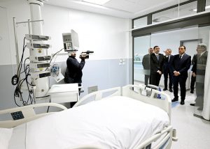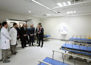 وتضمنت جولة رئيس مجلس الوزراء بالمستشفى تفقد الطابق الأول الذي يضم غرف إقامة المرضى؛ حيث شاهد نموذجا للجناح التعليمي، ونموذجا آخر للقسم الاقتصادي، وانتقل بعد ذلك للطابق الثاني الذي شاهد فيه نموذجا لغرف العمليات الجراحية، وقسم الإفاقة، كما تفقد قسم الرعاية المركزة، ووحدة رعاية القلب.