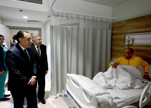 وفي أثناء تواجده بإحدى غرف الكشف، اطمأن الدكتور مصطفى مدبولي على سلامة أحد المرضى، الذي أشاد بمستوى الرعاية الصحية والخدمات المقدمة بالمستشفى.