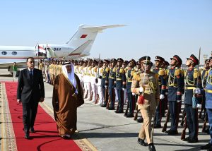 ولدى وصوله مطار القاهرة الدولي، أُقيمت مراسم استقبال رسمية لولي عهد مملكة البحرين الشقيقة والوفد المرافق له. وشهدت مراسم الاستقبال عزف السلاميْن الوطنيين لجمهورية مصر العربية ومملكة البحرين الشقيقة، أعقبه استعراض حرس الشرف، وذلك بحضور السفيرة/ فوزية بنت عبد الله زينل، سفيرة مملكة البحرين لدى مصر.