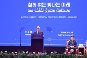 كما أشار الرئيس الكوري إلى مبادرة “SHINE” والتي تشمل ثلاثة مجالات تتمثل في السلام والازدهار والثقافة، وفتح مستقبل مشرق للشرق الاوسط وشبة جزيرة كوريا لتحقيق الاستقرار، وأن الحكومة الكورية ساهمت بشكل مباشر في إرساء السلام داخل الشرق الأوسط، معلنًا عن تقديم كوريا مساهمات بمقدار ١٠ ملايين دولار للهلال الأحمر المصري، واتفاقه مع فخامة الرئيس عبد الفتاح السيسي علي المشاركة في إعادة الاعمار داخل قطاع غزة، مؤكدًا حرصه على تحقيق مستقبل أكثر ازدهارًا من خلال الابتكار المشترك ودفع التنمية الاقتصادية.
