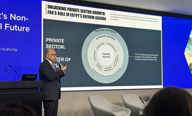 قدم الدكتور فريد، خلال كلمته عرضاً تقديمياً أبرز فيه دور الهيئة بتنفيذ استراتيجية الدولة المصرية “رؤية مصر 2030″، بإطلاق العنان لنمو القطاع الخاص، من خلال أجندة الإصلاح الاقتصادي، بجانب جهود الهيئة لتعزيز التحول الرقمي الذي يعد محور رئيسي لتعزيز دور القطاع المالي غير المصرفي في الاقتصاد القومي، من خلال وضع تنظيمات خاصة بالتكنولوجيا المالية، مع العمل على تعزيز الحماية والابتكار في السوق، وتطوير المعايير المحاسبية لتعزيز الشفافية وضمان دقة التقييمات، وكذلك إطلاق سوق أول كربون طوعي منظم ومراقب في مصر وأفريقيا، والعمل على إصدار قانون التأمين الموحد.