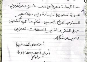رسالة شكر وباقة ورد لمصر والرئيس السيسى من مصابة فلسطينية