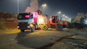 وفي سياق متصل تم تنفيذ حملة ليلية مكثفة أسفرت عن رفع نحو ٤٠٠ طن من المخلفات والرتش من حرم الطريق الدائري بنطاق حي العجوزة وذلك ضمن جهود المحافظة المستمرة لتحسين مستوى النظافة العامة، ومنع تراكم المخلفات بالمحاور الحيوية.