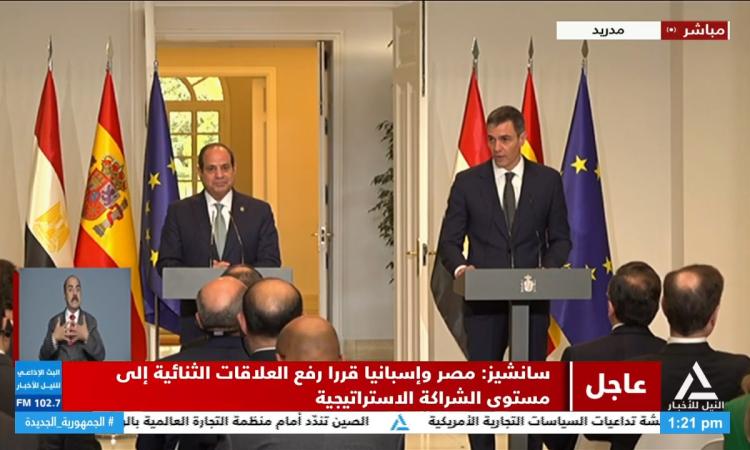 أشاد رئيس وزراء إسبانيا، بيدرو سانشيز، بالجهود المصرية المبذولة لتحقيق وقف إطلاق النار في قطاع غزة، و للتحقق من تطبيق الاتفاق.