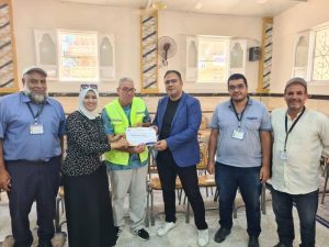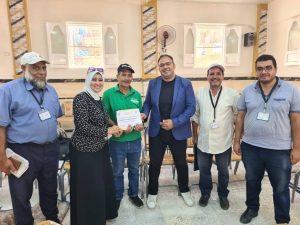 حيث قام فريق مرور الوزارة بتوزيع شهادات تقدير على بعض النماذج المتميزة من العاملين بقوافل البحيرة كما أشادوا بالجهد المبذول وقاموا بالحث على الإستمرار في التفاني والبذل لرفع رضاء جميع المنتفعين من القوافل الطبية ٠
