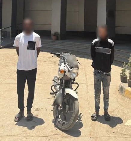 ضبط شخصين يستقلان دراجة نارية لقيامهما بتغطية لوحاتها المعدنية