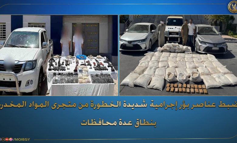 عقب تقنين الإجراءات تم إستهدافهم وأمكن ضبط عناصر تلك البؤر ، وبحوزتهم (192 كيلو جرام من المواد المخدرة “حشيش ، بودر” -كمية كبيرة من الأقراص المخدرة – 8 قطع سلاح نارى “4 بنادق آلية – 2 رشاش – طبنجة – بندقية خرطوش).
