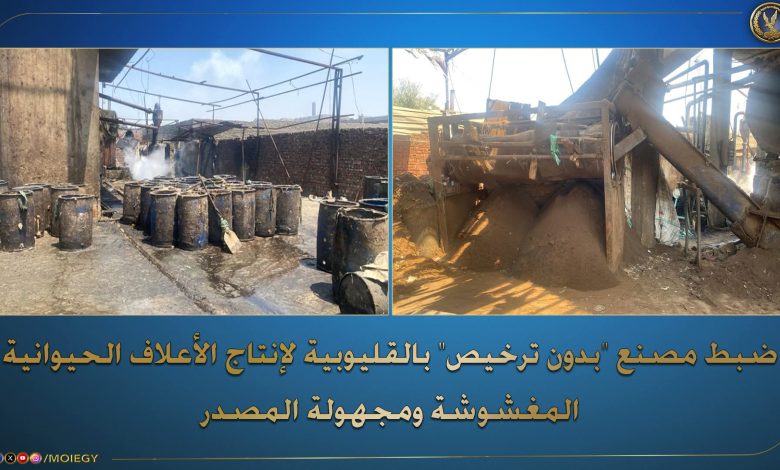 أكدت معلومات وتحريات الإدارة العامة لشرطة البيئة والمسطحات بمشاركة قطاع الأمن العام قيام (مالك مصنع “بدون ترخيص” – كائن بدائرة مركز شرطة الخانكة بالقليوبية) بإنتاج الأعلاف الحيوانية والداجنة المغشوشة وغير المسجلة ، بإستخدام مواد خام مجهولة المصدر وطرحها بالأسواق لتحقيق أرباح غير مشروعة.