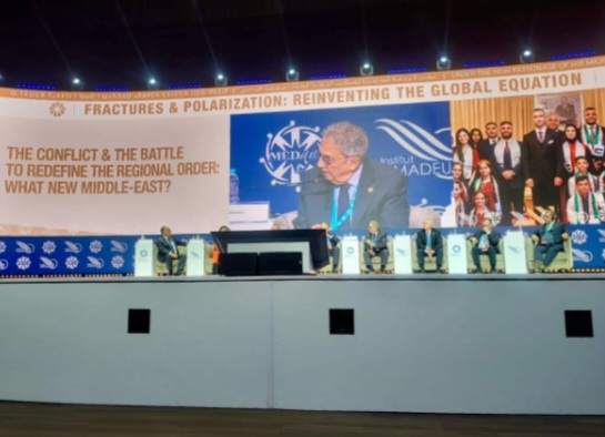 كما شارك الأمين العام الأسبق في جلسة بعنوان: «الصراع والمعركة لإعادة تعريف النظام الإقليمي: أي شرق أوسط جديد؟».