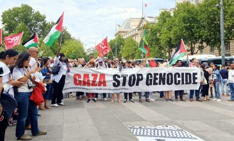 واحتشد العديد من المواطنين ، فرنسيين وعرب، في ساحة “الجمهورية” في قلب باريس، رافعين الأعلام الفلسطينية ومطالبين بوقف “الإبادة الجماعية في قطاع غزة”.