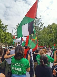 وردد المتظاهرون هتافات داعمة للفلسطينيين منها “غزة غزة .. باريس معك”، و”تحيا تحيا فلسطين” و”فلسطين حرة”، و”كلنا أطفال غزة”، كما طالبوا بوقف العمليات العسكرية الإسرائيلية في غزة ووضع حد للإبادة الجماعية التي يتعرض لها المدنيون في الأراضي الفلسطينية، وخاصة في غزة، مرددين “أوقفوا أوقفوا الإبادة الجماعية”.
