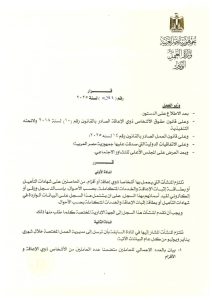 قرار وزارى بشأن تنظيم تشغيل الأشخاص ذوى الإعاقة والأقزام بالمنشآت