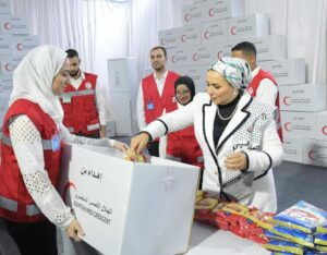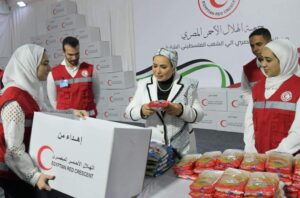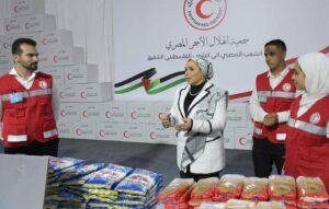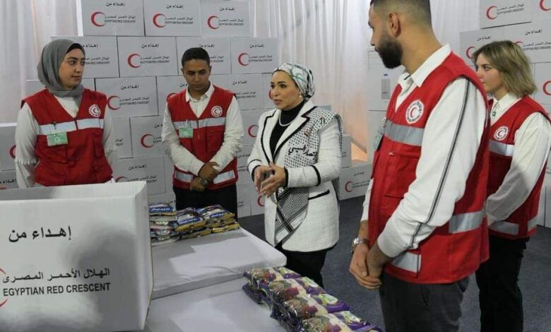 قرينة الرئيس تتفقد جهود الهلال الأحمر لدعم الأشقاء الفلسطينيين فى غزة