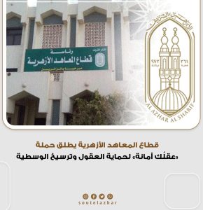 برعاية كريمة من فضيلة الإمام الأكبر أ.د أحمد الطيب، أطلق قطاع المعاهد الأزهرية حملة «عقلُك أمانة» داخل المعاهد الأزهرية على مستوى الجمهورية، والتي ينفذها مكتب (بناء)، في إطار رسالة الأزهر الشريف الخالدة لحماية الفكر، وصون العقول، وترسيخ منهج الوسطية والاعتدال.