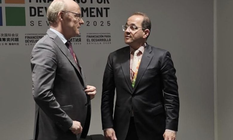 عقد أحمد كجوك وزير المالية، لقاءً ثنائيًا مع روبرت فان دير زي المدير المالي لبرنامج الأغذية العالمي، على هامش مشاركتهما فى المؤتمر الدولى الرابع للتمويل من أجل التنمية بأسبانيا.