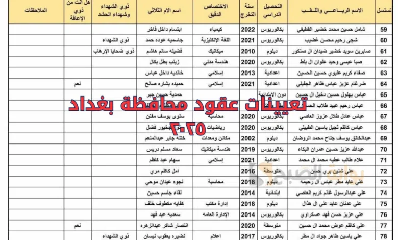 كشوفات pdf أسماء تعيينات عقود محافظة بغداد 2025