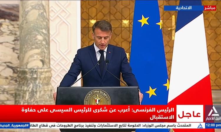 ماكرون: نرفض التهجير القسري للفلسطينيين .. ونشيد بجهود مصر لاستئناف المفاوضات