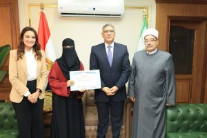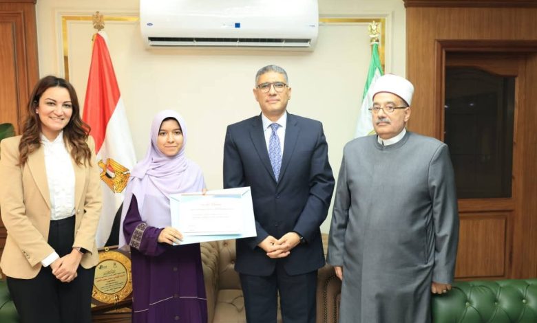 كما كرم المحافظ الطالبة هدى محمد محمود، الطالبة بمعهد فتيات الشيخ زايد، الحاصلة على المركز العاشر على مستوى الجمهورية بالقسم الأدبي بمجموع 575 درجة بنسبة 97.5%، والتي التحقت بكلية الدراسات الإسلامية والعربية – شعبة الشريعة والقانون باللغة الإنجليزية.