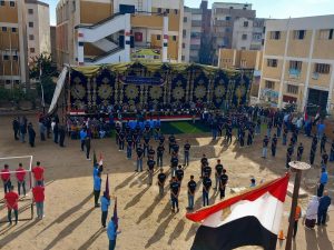 محافظ الدقهلية يشهد عرض عسكري بطابور الصباح بمدرسة أجا الثانوية الصناعية العسكرية