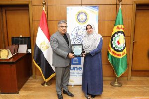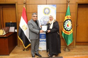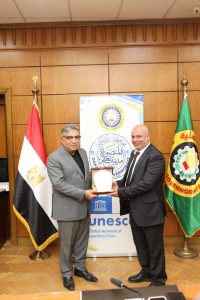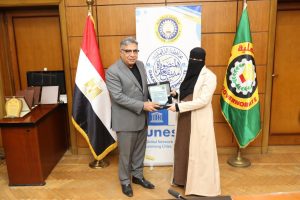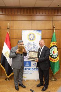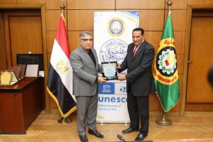 وضم وفد وزارتي التعليم العالي والتنمية المحلية الذين حضروا الاحتفال بالتكريم، الدكتور شريف صلاح الأمين المساعد للجنة الوطنية لليونسكو بوزارة التعليم العالي، الدكتورة ولاء جزر منسق لجنة اليونسكو بوزارة التنمية المحلية، والدكتور محمد الحارتي عضو الإدارة العامة للعلاقات الدولية والاتفاقات بوزارة التنمية المحلية، إلى جانب الأستاذة هانم التهامي مدير إدارة التعاون الدولي بالمحافظة، والأستاذة رندا الزهيري وكيل إدارة التعاون الدولي، والأستاذة هبه وهبه رئيس قسم الترجمة بالإدارة.