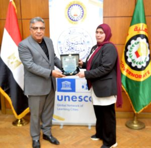 وأكد المحافظ أن الانضمام إلى شبكة اليونسكو يفرض مواصلة المسيرة نحو تحقيق الغايات واستكمال الإنجازات، وتيسير الخطوات نحو تنمية مجتمعية مستدامة وبيئة بنَّاءة للتعلم، وشراكة وثيقة مع جميع المدن للعمل كخلية واحدة تسمو بالمجتمع وتنهض بالوطن، وتحقق الأمن والازدهار لمصرنا الغالية.