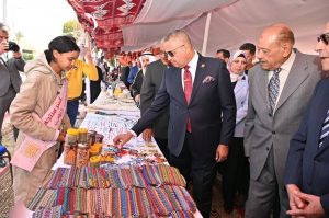 ..ويفتتح معرضا للمشغولات والمنتجات البدوية