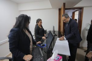 وخلال جولته داخل المبنى، تفقد المحافظ إدارات خدمة المواطنين والحوكمة ومكاتب المديرية المختلفة، لمتابعة سير العمل ومستوى الأداء، مشيدا بحالة الانضباط والتنظيم داخل المبنى الجديد، وما يتيحه من بيئة عمل مناسبة لتقديم خدمة أفضل للمواطنين.