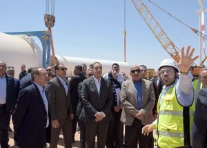 وانتقل رئيس الوزراء ومرافقوه لتفقد إحدى التوربينات (D52)، واستمع خلال ذلك لشرح من المهندس خالد الدجوي، الذي أوضح أن المحطة بقدرة ٦٥٠ ميجاوات، ويتكون المشروع بصفة رئيسية من ١٠٤ توربينات رياح، ٨٤ توربينة بقدرة ٦ ميجا وات و٢٠ توربينة بقدرة ٧٫٥ ميجاوات وهي (الأكبر في مصر من حيث القدرة والارتفاع)، كما تعد الأكبر من نوعها تحت التشغيل في أفريقيا، كما يعد المشروع من أسرع المشروعات الجاري تنفيذها؛ حيث تم إنشاء ٥٠٠ ميجاوات في ٢٤ شهراً بدلا من المخطط الأصلي ٣٠ شهراً، أي قبل الموعد المحدد وفق الجدول الزمني للمشروع بـ 6 أشهر.