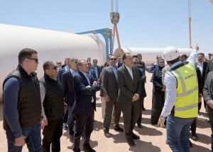 وعقب ذلك، انتقل الدكتور مصطفى مدبولي ومرافقوه لتفقد توربينة ( D98) تحت الإنشاء، وخلال ذلك تعرف رئيس الوزراء من خلال الشرح على اللوحات بموقع المشروع على أعمال تركيب التوربينات من مسئولي الشركة، كما تفقد التوربينة تحت التنفيذ، وفي أثناء ذلك شرح المهندس خالد الدجوي الخطة الزمنية للمشروع، والتي بدأت منذ توقيع اتفاقية شراء الطاقة مع اتحاد الشركات المنفذة في أكتوبر 2021، مرورا بالمرحلة الأولى من التشغيل التجاري في ديسمبر 2024 بقدرة 306 ميجاوات قبل الموعد المحدد بـ 4 أشهر، ثم المرحلة الثانية في أبريل الجاري بقدرة 194 ميجاوات، بإجمالي 500 ميجاوات حتى الآن، ومن المخطط الانتهاء من المرحلة الثالثة في يونيو 2025 بقدرة 150 ميجاوات.